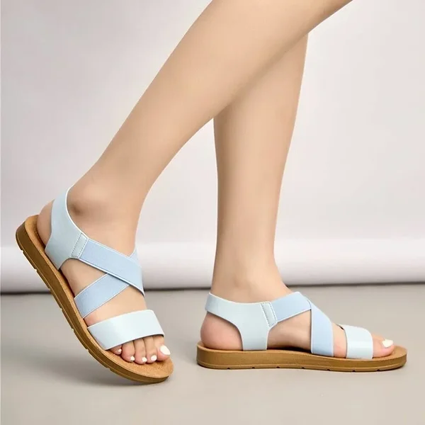 Mugav ja painduv detailid: Sandaalidel on risti asetsevad laiad rihmad, millest osa on elastsest materjalist. See tagab jalanõude ideaalse istuvuse ja liikumisvabaduse, kohandudes vastavalt jala kujule.