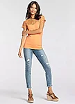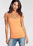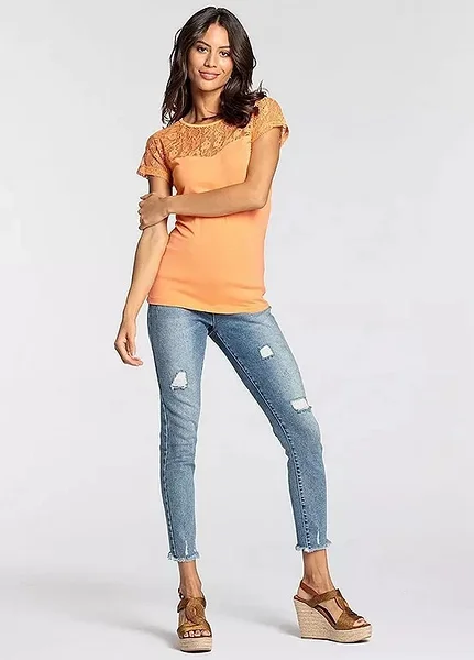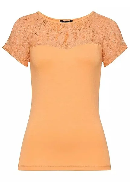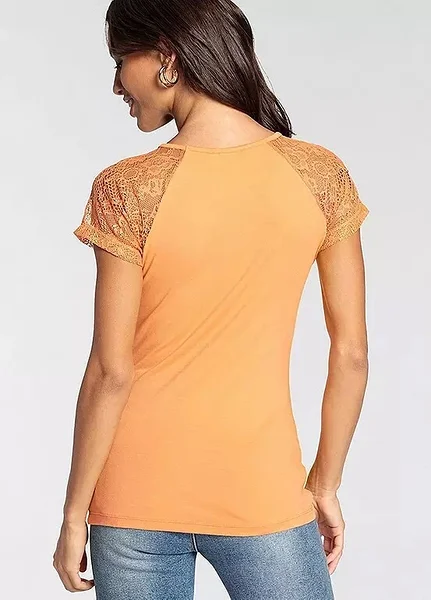 Naiselik pitsdetailidega pluus erksas oranžis toonis. Mugavast ja elastsest materjalist, kauni pitsist ülaosaga, mis lisab riietusele elegantsi. Sobib nii igapäevaseks kandmiseks kui ka pidulikumaks outfit’iks – kombineeri teksade või seelikuga. Pluusi pikkus 65cm.