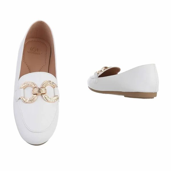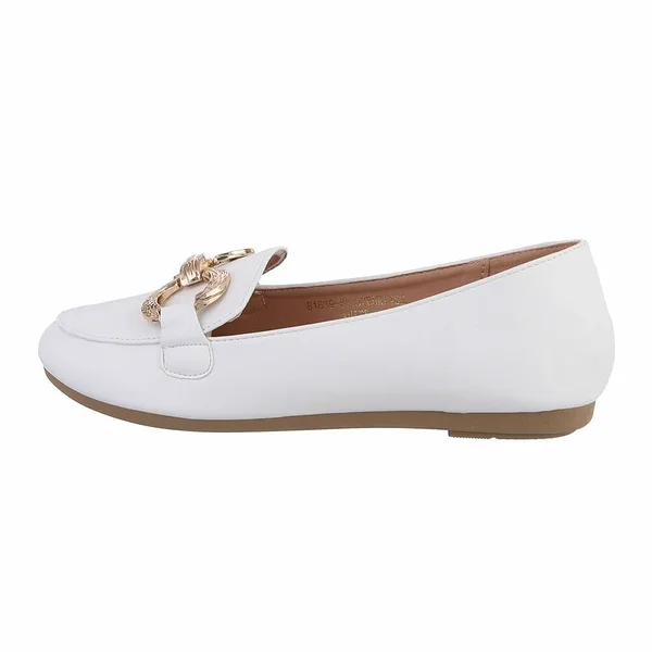 Elegantsed valged mokassiinid kuldse detailiga, mis lisab klassikalisele disainile stiilse aktsendi. Mugav ja kerge mudel sobib nii igapäevaseks kandmiseks kui ka viisakamaks outfitiks. Kingadel on väga hea kummist tald ja pehme sisetald.