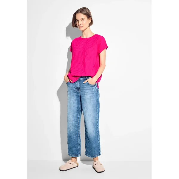 Erksavärviline pluus kergest kortsukangast. Sirge lõige ja mugav istuvus teevad sellest ideaalse igapäevase valiku – sobib hästi nii teksade kui ka seelikuga. Mõnus kanda soojal hooajal. Ümar kaelus ja lühikesed varrukad.
