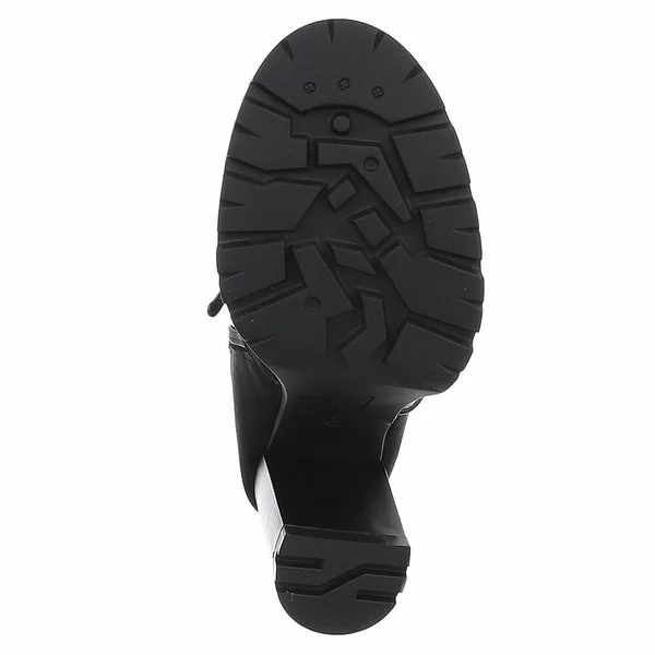 Trendikad mustad poolsaapad paksema tallaga ja stabiilse kontsaga. Mugav lukuga kinnitus ja elastne osa tagavad hea istuvuse ning lihtsa jalga paneku. Sobivad ideaalselt nii igapäevaseks kandmiseks kui ka pidulikumaks outfit’iks jahedamal hooajal.