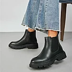 Stiilsed mustad poolsaapad massiivse tallaga, mis pakuvad mugavust ja kindlat sammu igapäevaseks kandmiseks. Trendikas disain sobib nii teksade kui ka kleidiga. Küljelukk ja elastne paneel muudavad jalga paneku lihtsaks ning tagavad hea istuvuse.