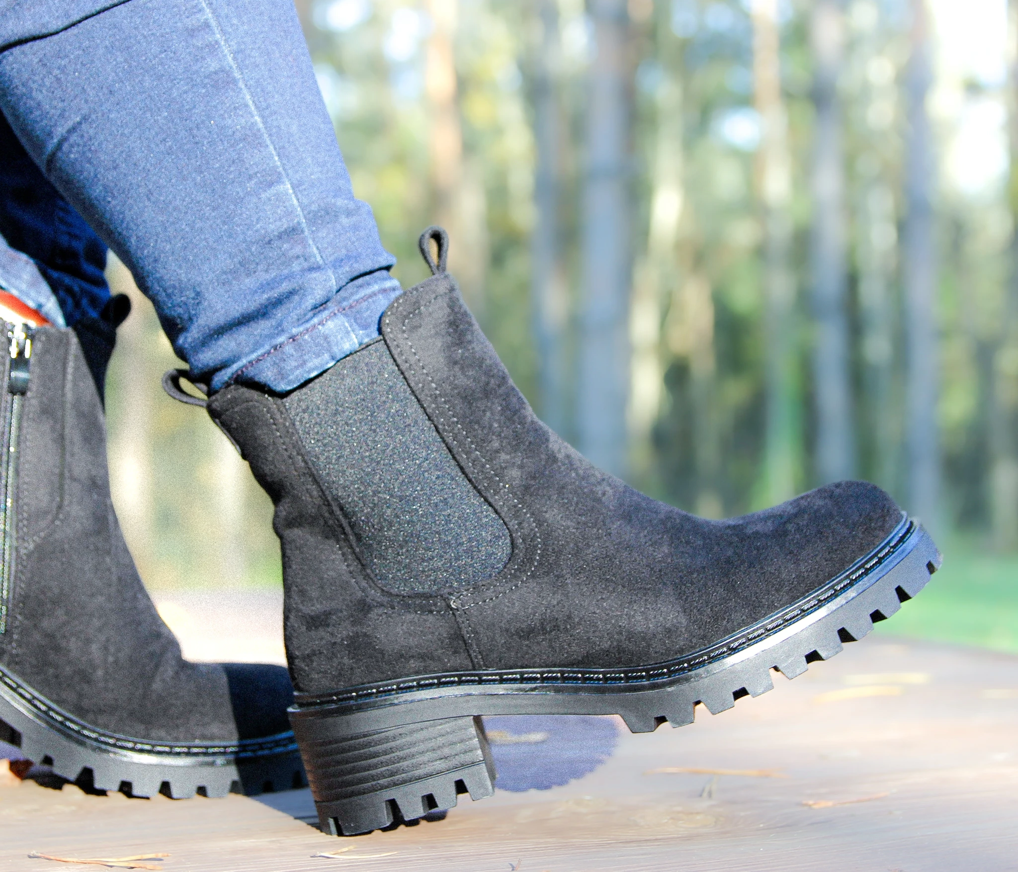 Klassikalised mustad naiste poolsaapad pehme tehis-seemisnahast viimistlusega. Mugav ja vastupidav muster-tald tagab hea haarduvuse ning külje peal olev lukk teeb jalga panemise lihtsaks. Sobivad ideaalselt igapäevaseks kandmiseks sügisel ja kevadel.