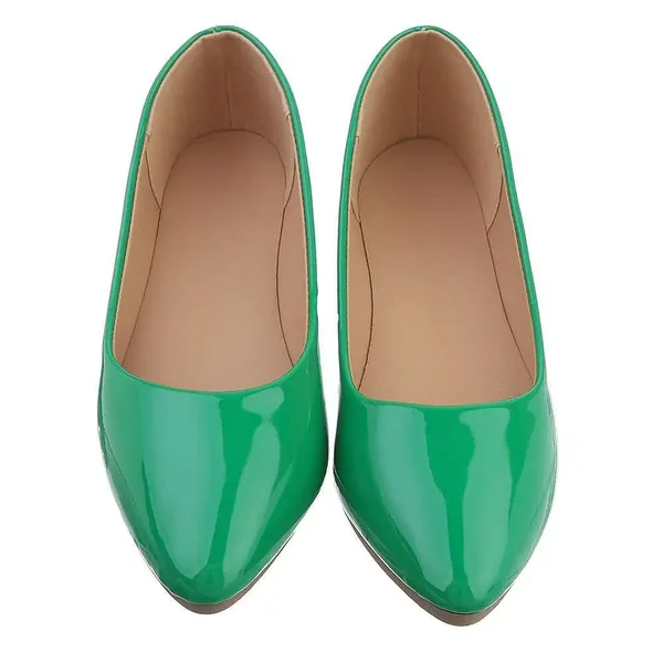 Erksat rohelist värvi lakkkunstnahast baleriinad, mis lisavad igale outfitile värvi ja elegantsi. Kerge ja painduv tald tagab mugava kandmise terve päeva jooksul, terav nina annab modernse ja naiseliku ilme. Ideaalne nii igapäevaseks kandmiseks kui ka pidulikumaks komplektiks.
