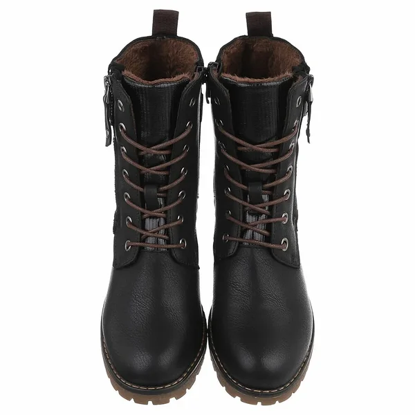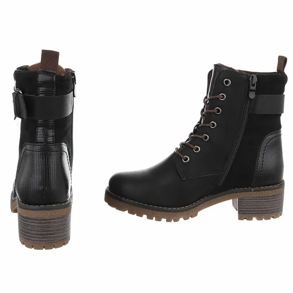 Praktilised mustad naiste poolsaapad igapäevaseks kandmiseks. Tugev libisemiskindel tald tagab hea haarduvuse, samas kui mugav konts pakub stabiilsust kogu päevaks. Paelad ja lukk võimaldavad head istuvust ning kiiret jalga panekut. Ajatu disain sobib suurepäraselt nii teksade kui ka kleidiga.