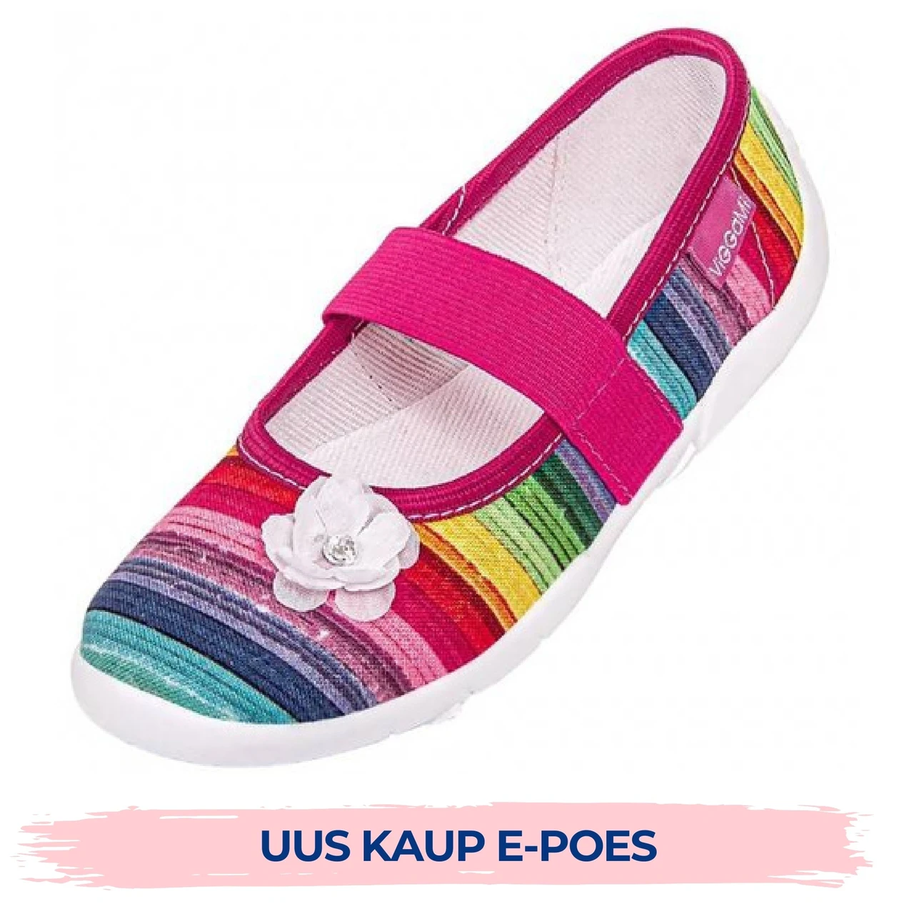 Armsad ja värvilised tüdrukute tekstiilkingad Viggami ILONA – mugavad ja hingavad baleriinad, mis sobivad nii siseruumidesse kui ka õue. Painduva kummitallaga, mis ei libise ning laseb jalal loomulikult liikuda. Kaunistuseks lilleke ja elastne rihm, mis hoiab jalanõu kindlalt jalas.