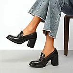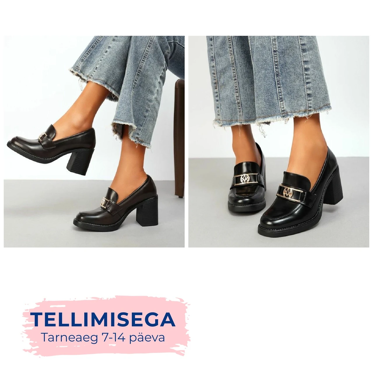 Elegantse disainiga kõrge kontsaga mokassiinkingad, mida kaunistab kuldne dekoratiivne detail. Mugav plokk-konts ja stabiilne tald teevad need ideaalseks igapäevaseks või kontoris kandmiseks. Klassikalised toonid sobivad hõlpsalt erinevate riietustega.Saadavus: tellimisega