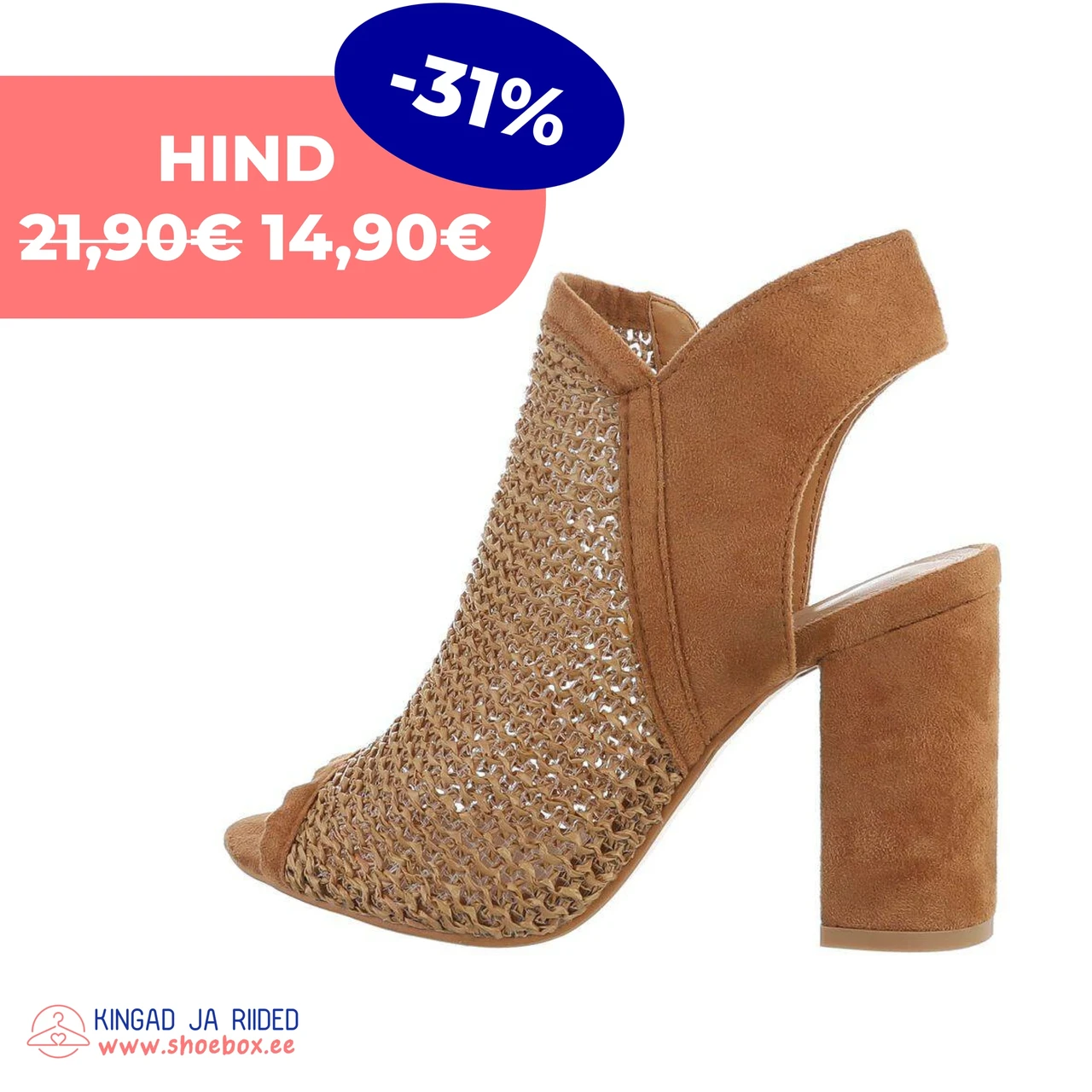 Stiilsed pruuni tooni kingad mugava plokk-kontsaga. Hingava punutud materjalist pealne hoiab jalad suvel jahedana ning lukk külje peal teeb jalga panemise lihtsaks. Moodne ja praktiline valik suviseks hooajaks!