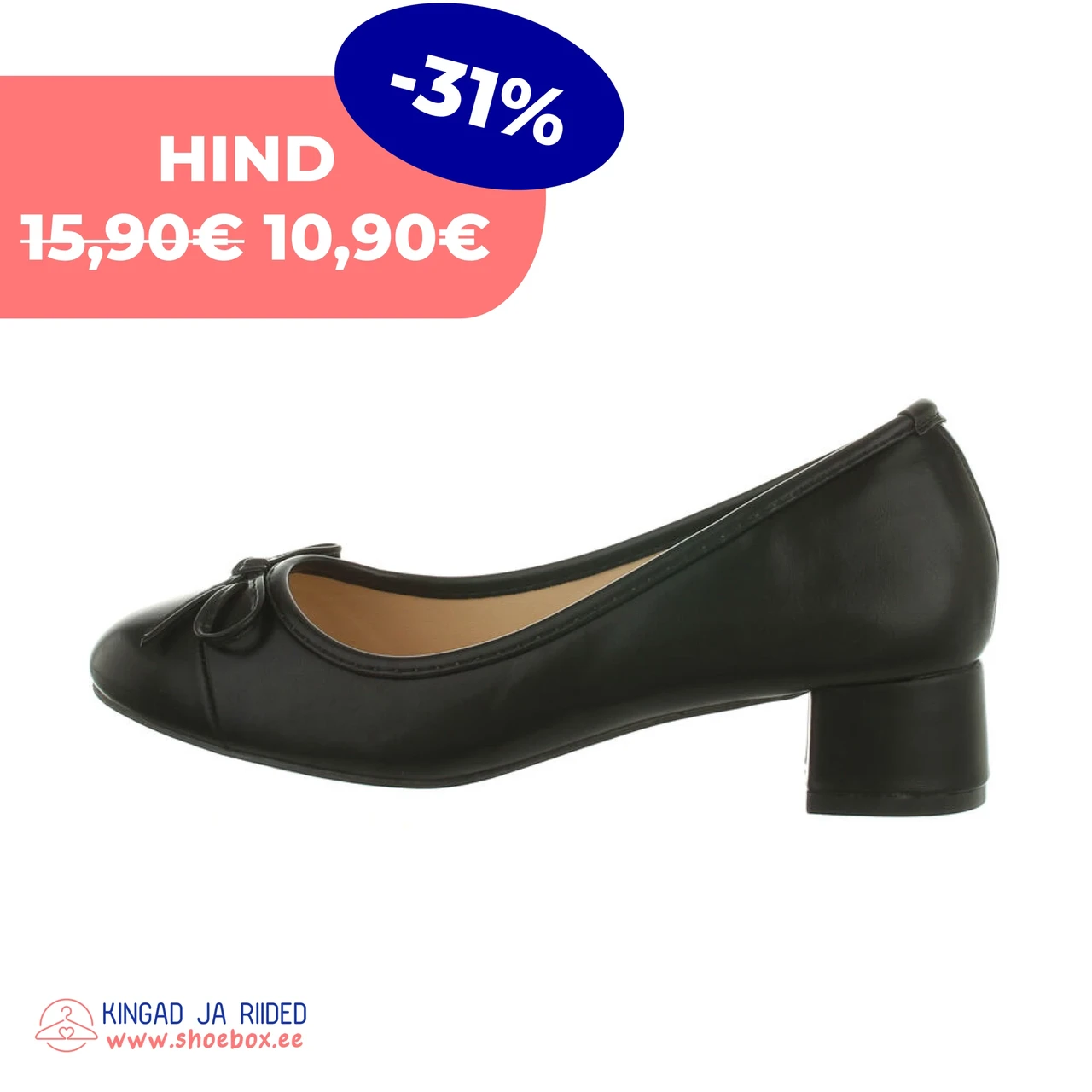 Klassikaline valik, mis töötab nii kontoris kui ka peolauas. Musta tooni madala plokk-kontsaga kingad on valmistatud pehmest kunstnahast, mis annab stiilse välimuse ja on samas lihtsasti hooldatav. Ümar nina ja tagasihoidlik lipsu-detail loovad ajatult naiseliku joone. 4cm stabiilne konts pakub mugavust ka pikemaks kandmiseks. Ideaalne valik neile, kes hindavad mugavust, kuid ei tee järeleandmisi välimuses.