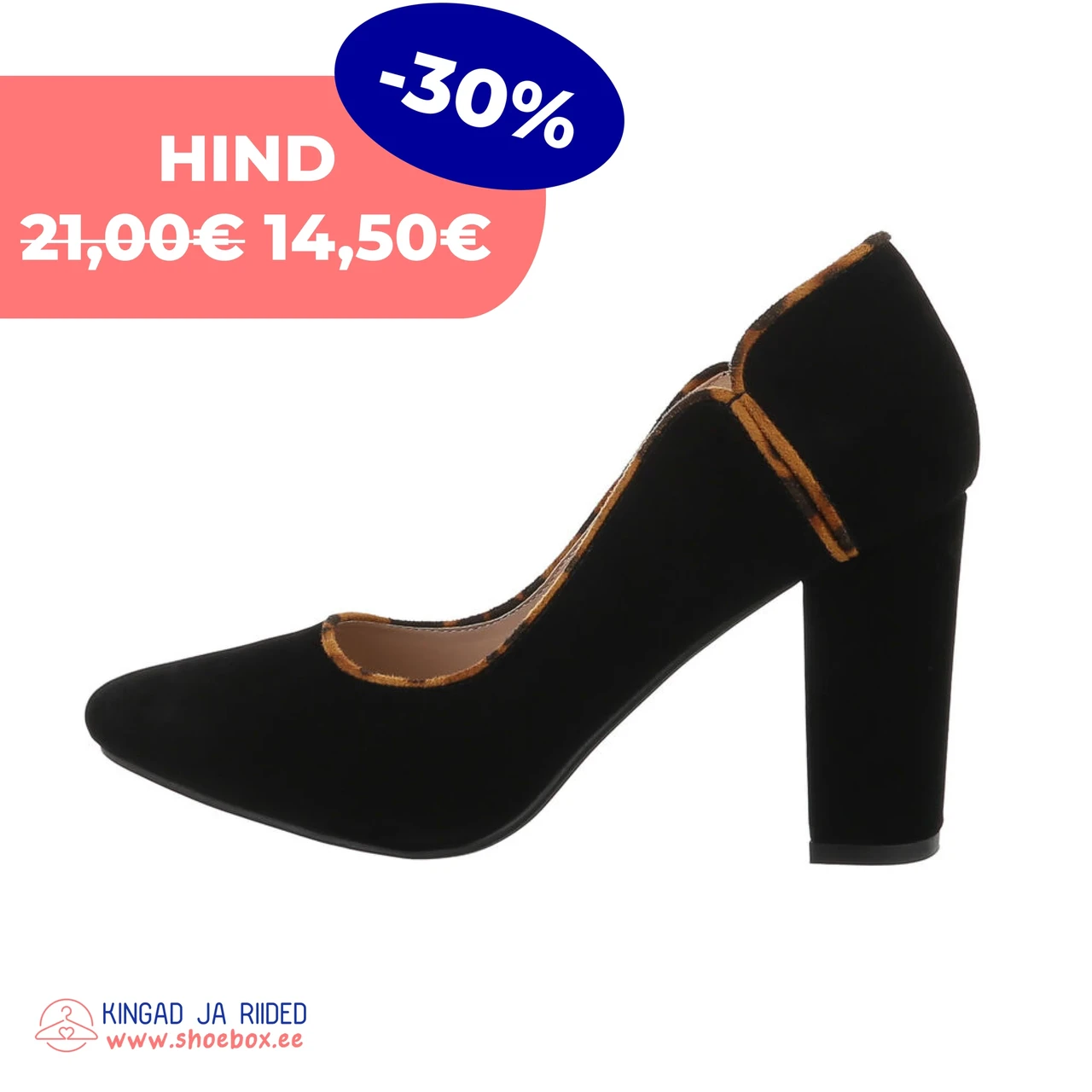 Elegantsed ja trendikad kontsakingad, mis ühendavad klassikalise musta sametise viimistluse ning julge leopardimustrilise serva. Kingadel on mugav plokk-konts, mis tagab stabiilsuse ja sobib nii igapäevaseks kandmiseks kui ka pidulikeks puhkudeks. Soovitame pigem kitsamale jalale!Saadavus: laos