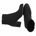 Elegantsed, ajatu stiiliga naiste poolsaapad. Tegemist on klassikalise mudeliga, millel on mugav blokk-konts ja kaunistuseks minimalistlik pannal. Saapad on kergesti jalga pandavad tänu küljel asetsevale lukule ning sobivad ideaalselt nii argipäevaseks kandmiseks kui ka pidulikemaks sündmusteks. Stiilne valik sügis-talviseks hooajaks!Saadavus: tellimisega