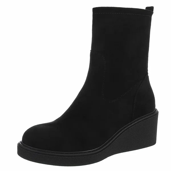 Stiilsed mustad naiste kiilkontsal poolsaapad. Pehme tekstiilviimistlus loob elegantse ja minimalistliku välimuse, samas kui mugav kiilkonts lisab kõrgust ilma jalgu väsitamata. Külgtõmblukk teeb jalga panemise lihtsaks ja kiireks. Soe sisemine vooder ja libisemiskindel tald sobivad hästi sügis–talve ilmadesse. Ideaalne valik neile, kes armastavad mugavust ja stiili ühes!Saadavus: tellimisega