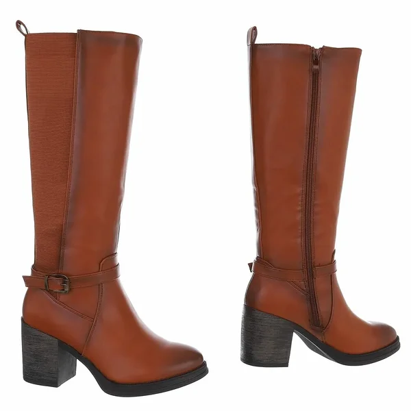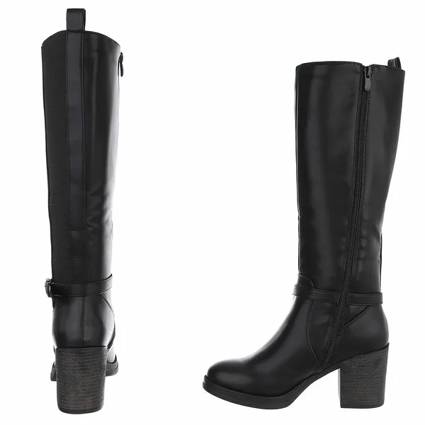 Stiilsed kõrge säärega poolsaapad – mugava plokkkontsa ja pehme kunstnahast viimistlusega. Küljel olev elastne paneel tagab parema istuvuse ning dekoratiivne pannal lisab modernset ilmet. Lihtne jalga panna tänu tõmblukule siseküljel. Ideaalne igapäevaseks kandmiseks nii seeliku kui teksadega.Saadavus: tellimisega