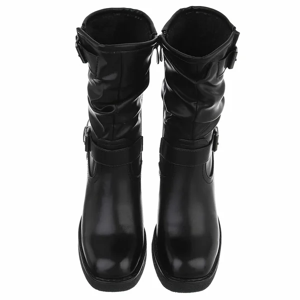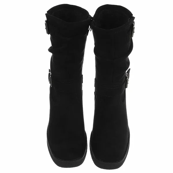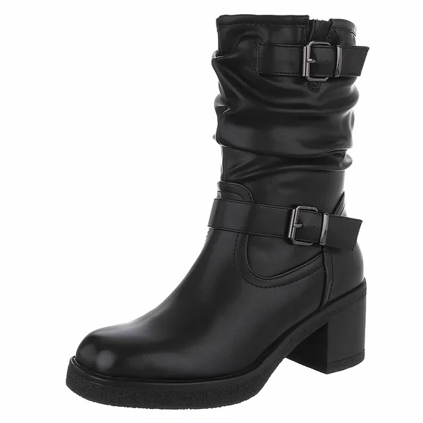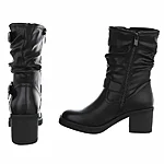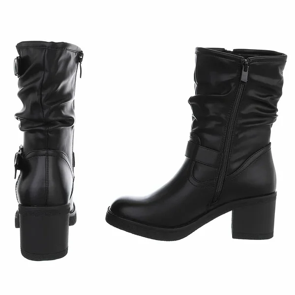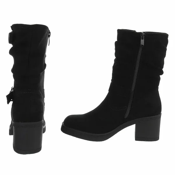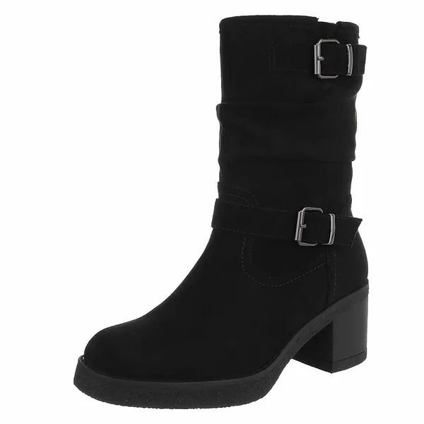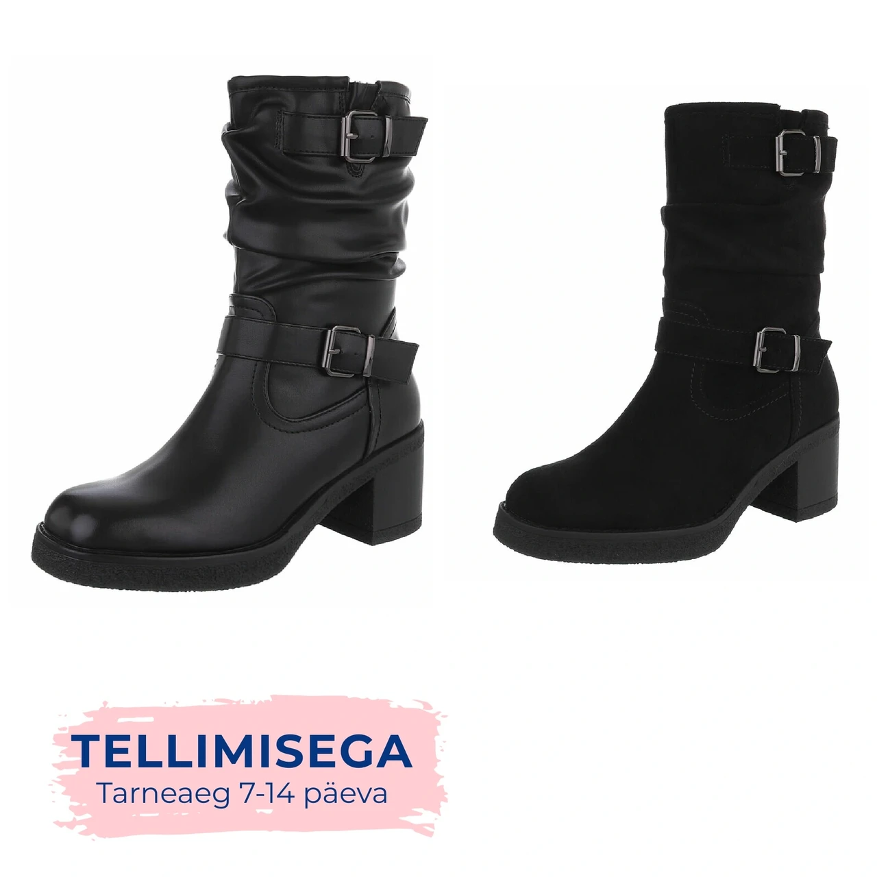 Stiilsed mustad naiste poolsaapad keskmise kontsaga. Pehme kunstnahast või tekstiilist pealismaterjal ja dekoratiivsed pandlad loovad naiseliku välimuse. Külgtõmblukk teeb jalga panemise mugavaks.Soe vooder ja libisemiskindel tald sobivad suurepäraselt sügis–talveperioodiks.