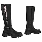 Klassikalised kõrged saapad on ideaalne valik sügiseks ja talveks. Vastupidav tald tagab hea haarduvuse, sisemine lukuga kinnitus muudab jalgapaneku mugavaks. Pandlaga rihm ja luku taga peitus olev laiguline disain lisab saapale dekoratiivset iseloomu. Kombineeri kleitide, seelikute või teksadega – ideaalne valik igapäevaseks kandmiseks!Saadavus: tellimisega