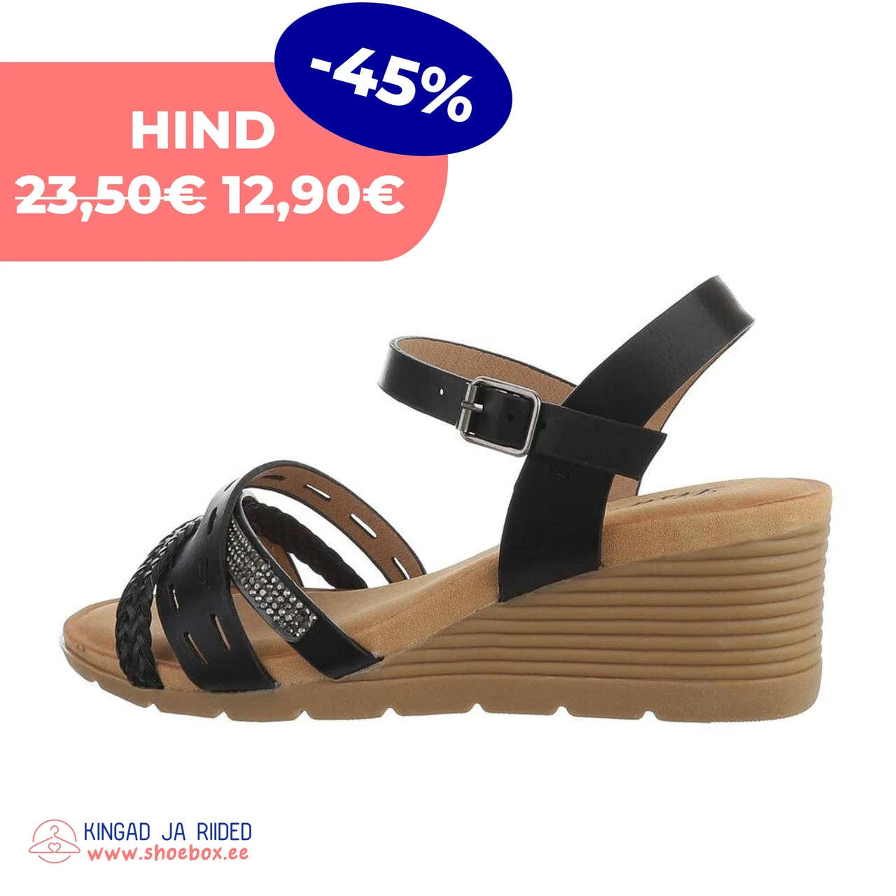 Stiilsed ja mugavad mustad kiilkontsaga sandaalid, mille mitmekihiline rihmakujundus koos punutise ja kivikestega lisab elegantsi igale sammule. Reguleeritav rihm tagab mugava istuvuse ning kummist tald pakub suurepärast kandmismugavust kogu päeva vältel. Ideaalne valik suvisteks päevadeks ja linna-avastusteks!