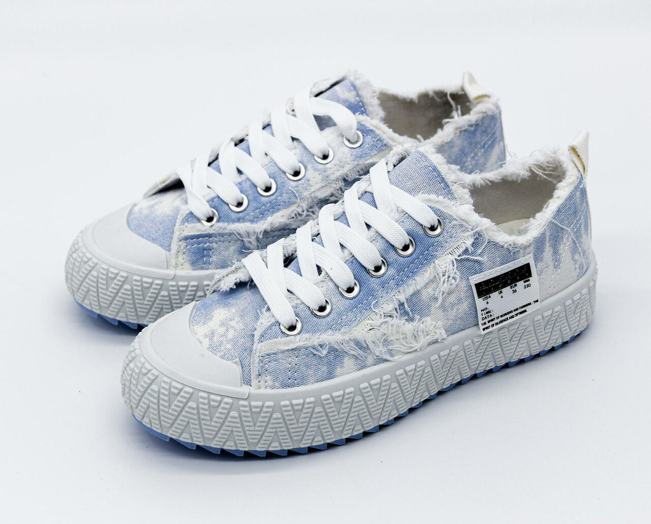 Stiilsed ja pilkupüüdvad helesinised platvormtennised kulutatud teksariide välimusega. Kingadel on paksud, mustrilised tallad ning mugav paeltega kinnitus. Ideaalne valik neile, kes armastavad tänavastiili ja soovivad lisada oma sammule karakterit.